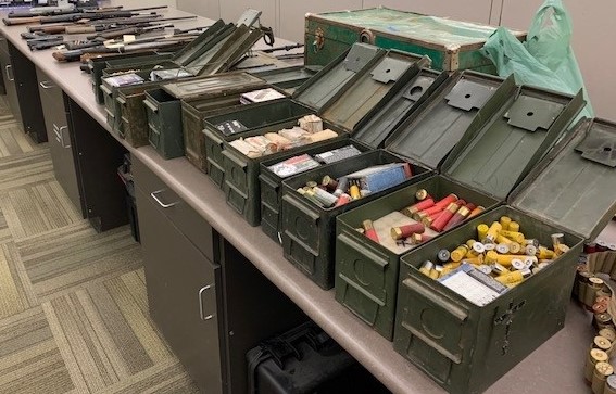 Officers located 20 firearms and approximately 20,000 rounds of ammunition.
